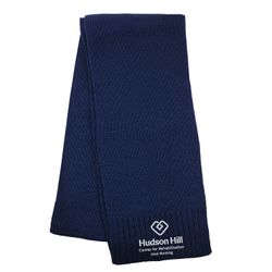 The fashion knit scarf has a nice finished hem on both ends. 100% Acrylic. Great item for your fall and winter promotions!