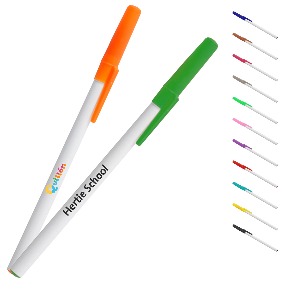 Promote your brand with our USA decorated Durable Stick Pens Pen w/ Colored Cap! This popular Value Plastic Pen has a smooth & durable Plastic Body. Measuring at 0.25"W X 6.00"L, this essential office pen offers a large imprint area of 1.75"W x 0.75"H, ideal for maximum brand exposure. Perfect for any office, schools, tradeshows, and more, this economy plastic pen is sure to boost your brand image. Order these pens today and market your brand like never before! Writes in Blue Ink.